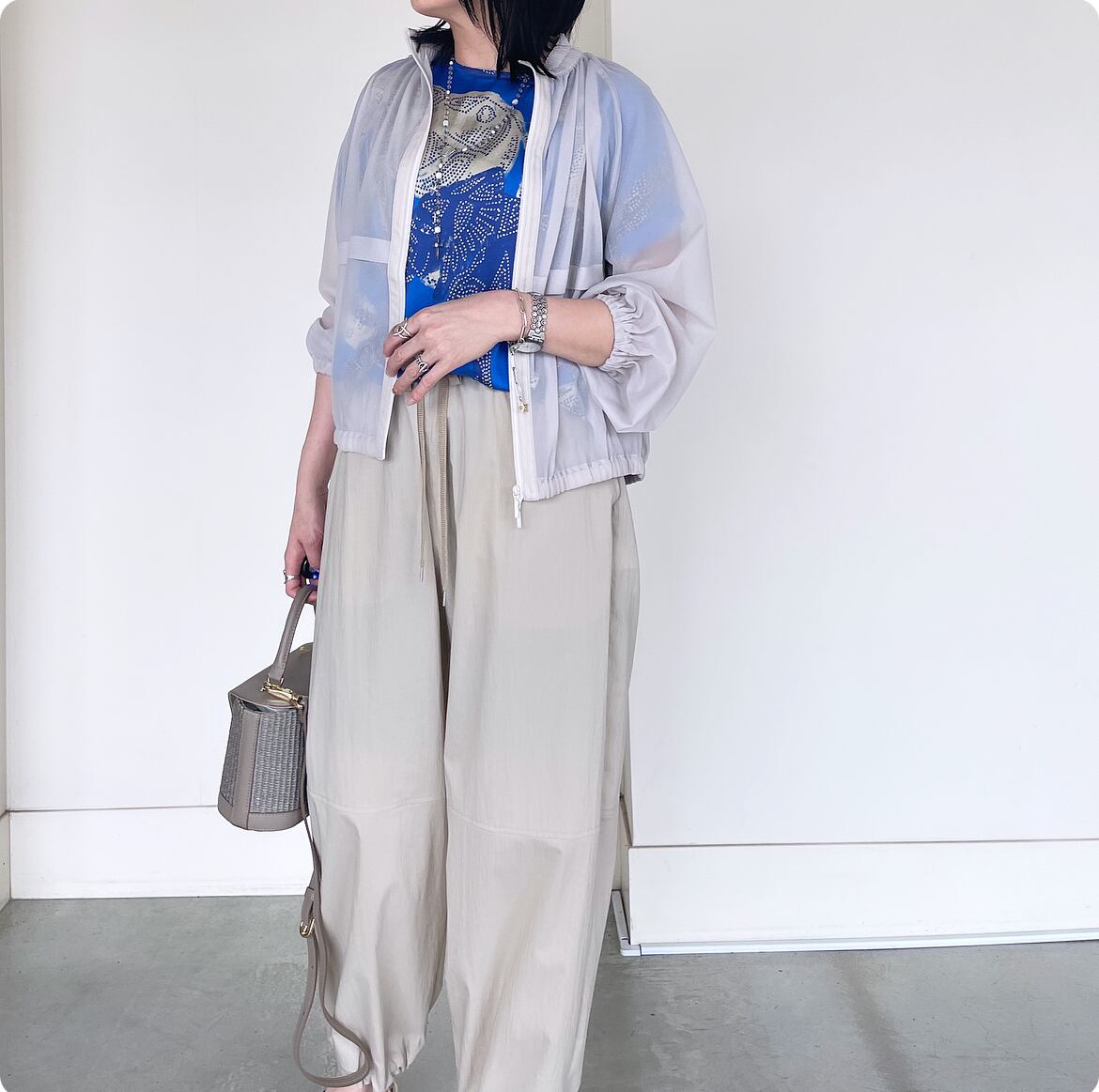 裾は絞ってシルエットを変えられる、スポーティーなドローコード付きでお好みのシルエットをお楽しみ頂けます。