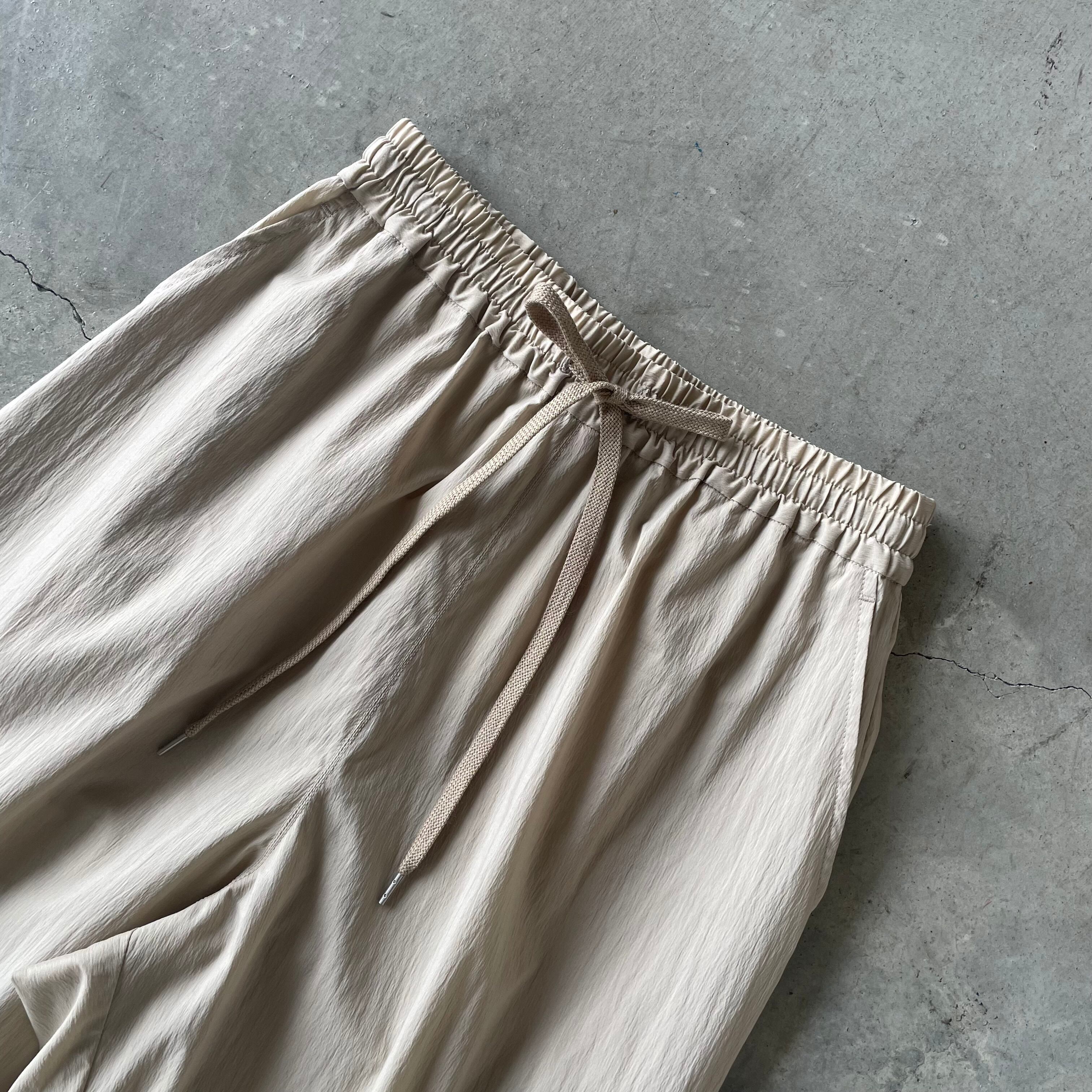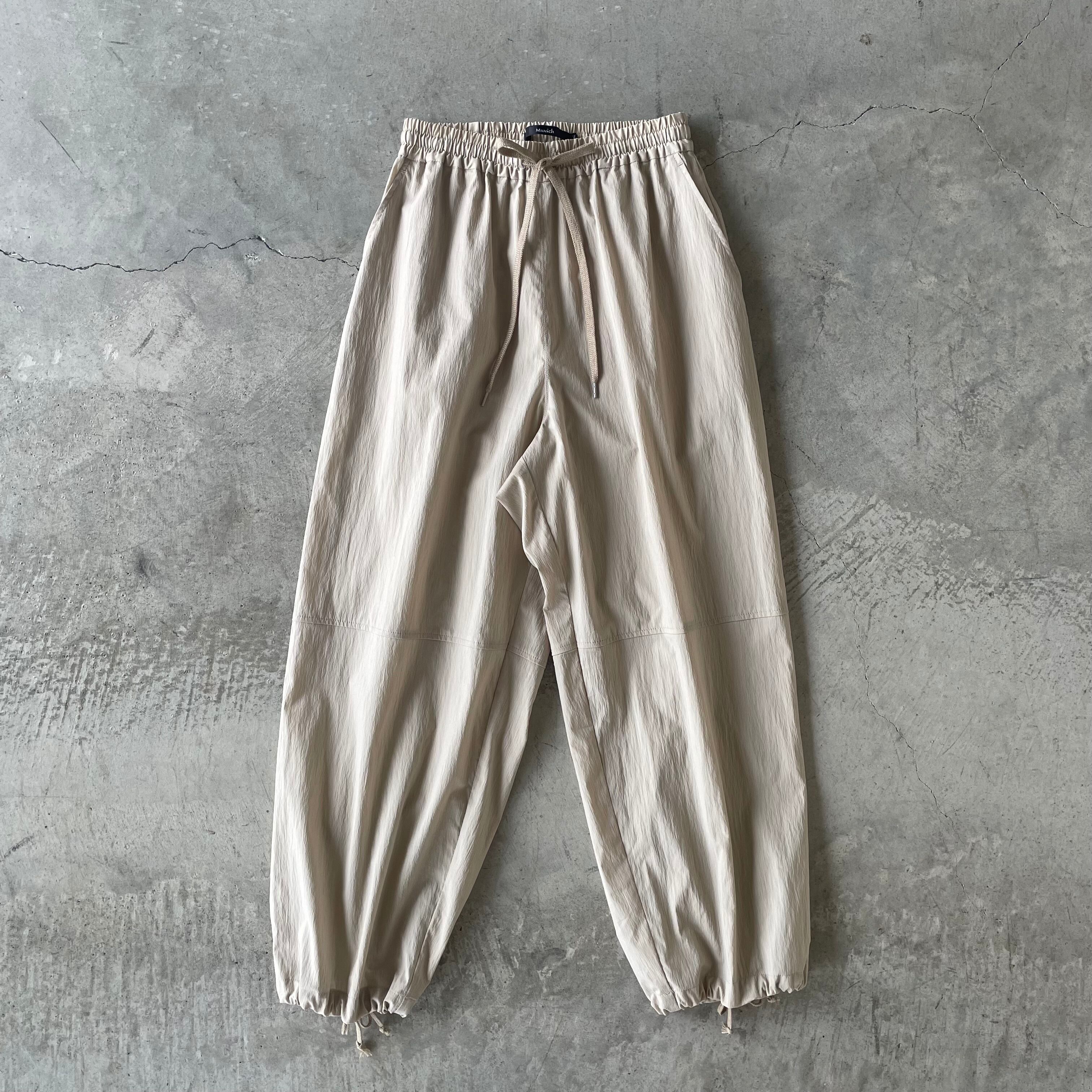 軽量でソフトなタッチのコットンナイロン素材で程よくストレッチも効いていて穿き心地も良いイージーパンツ。