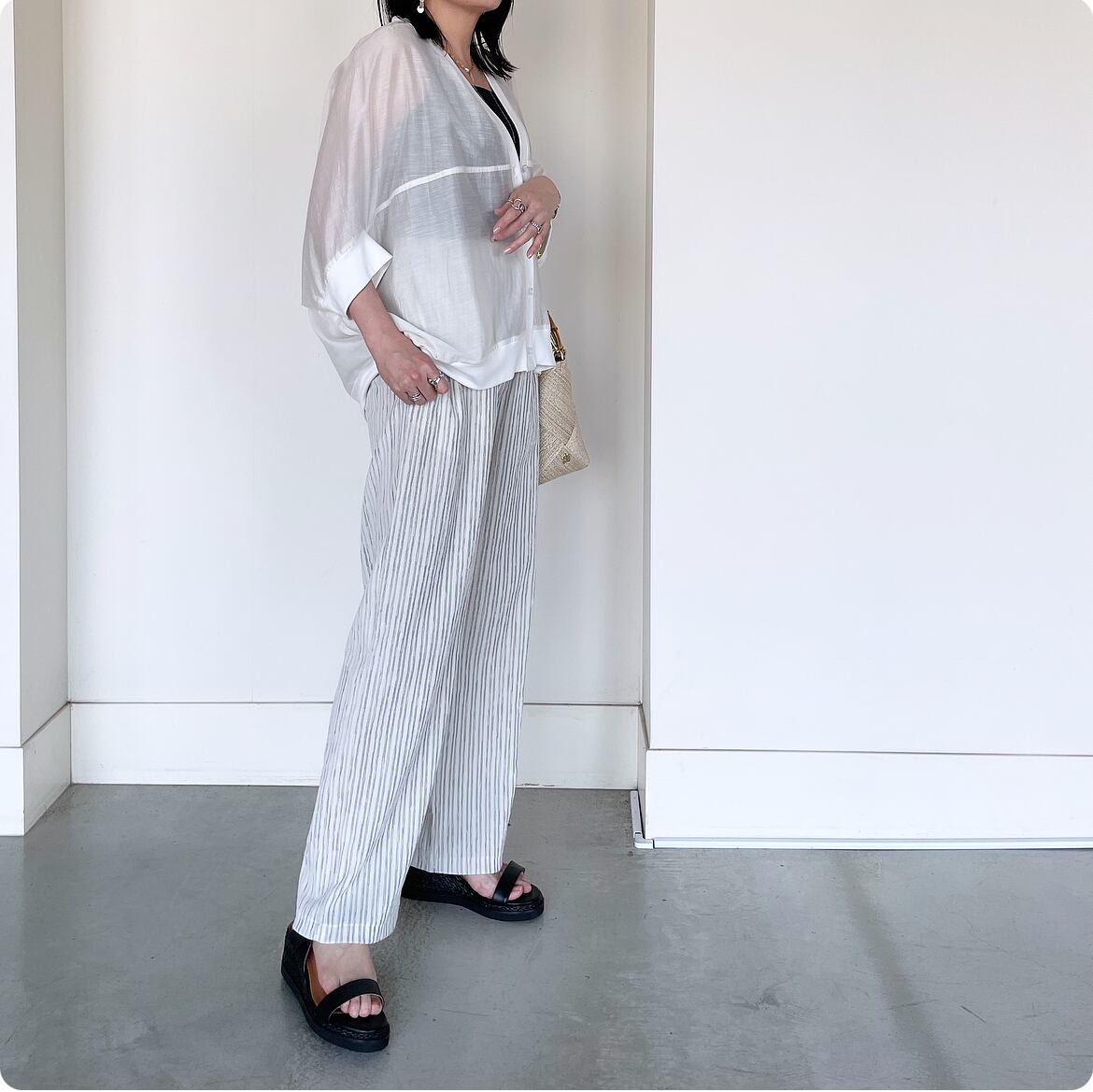 トップスにはまだまだトレンドの"シアーアイテム"を合わせれば品のあるオトナカジュアルコーデが完成です。