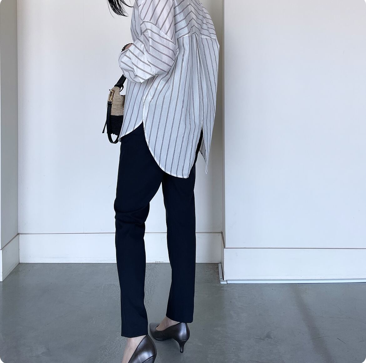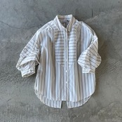 上品ストライプながらも遊び心のある、1枚でもオシャレ感満載なオススメストライプシャツです。