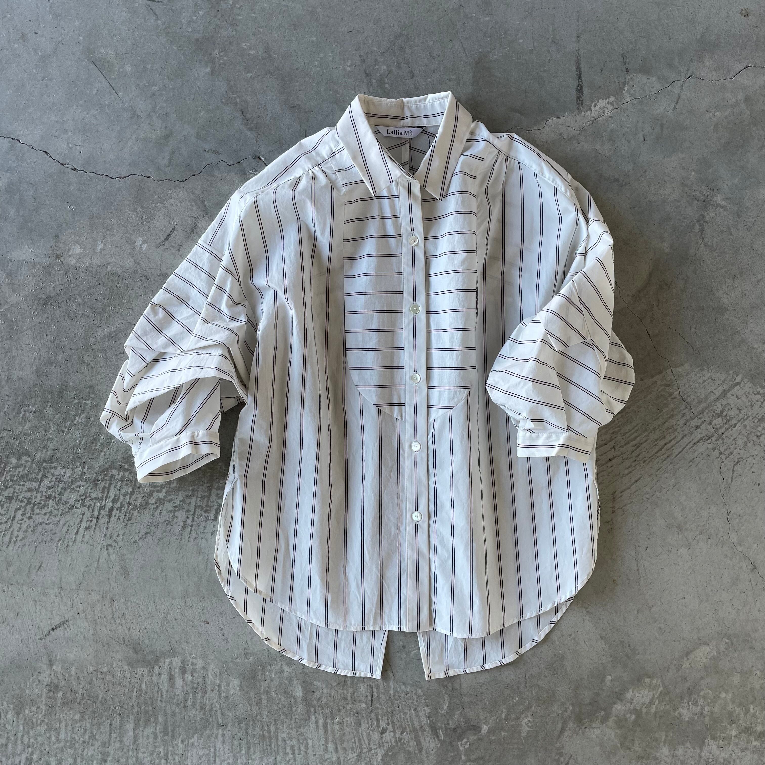 お袖の立体デザインがポイントなんです♪ ウェーブスリーブストライプシャツ/Lallia Mu ラリアムー