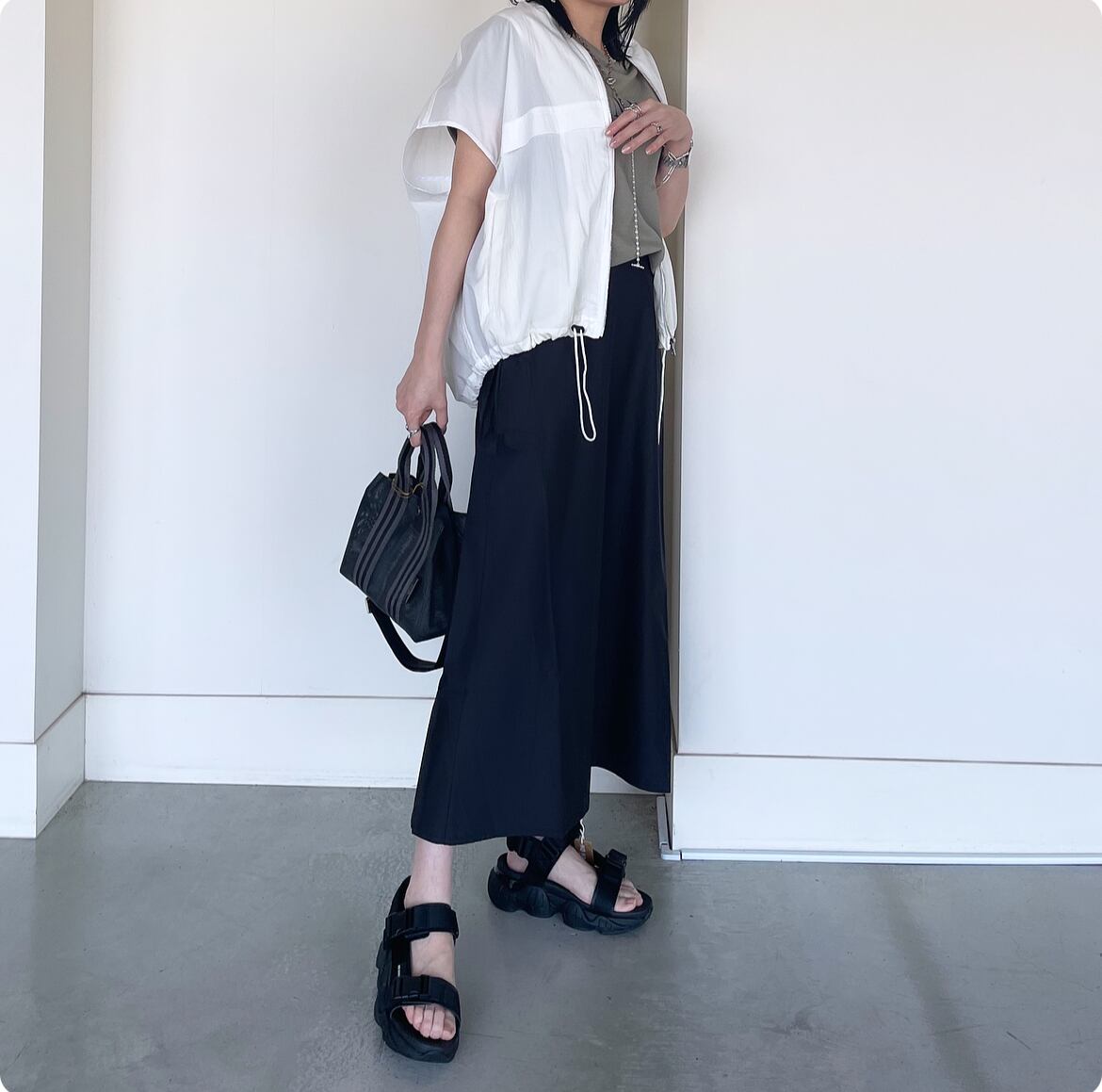 ブラウスやシャツアイテム合わせでキレイめコーデはもちろん、ロゴTにブルゾンなどのちょっぴりスポーティに崩したコーデもオススメです。