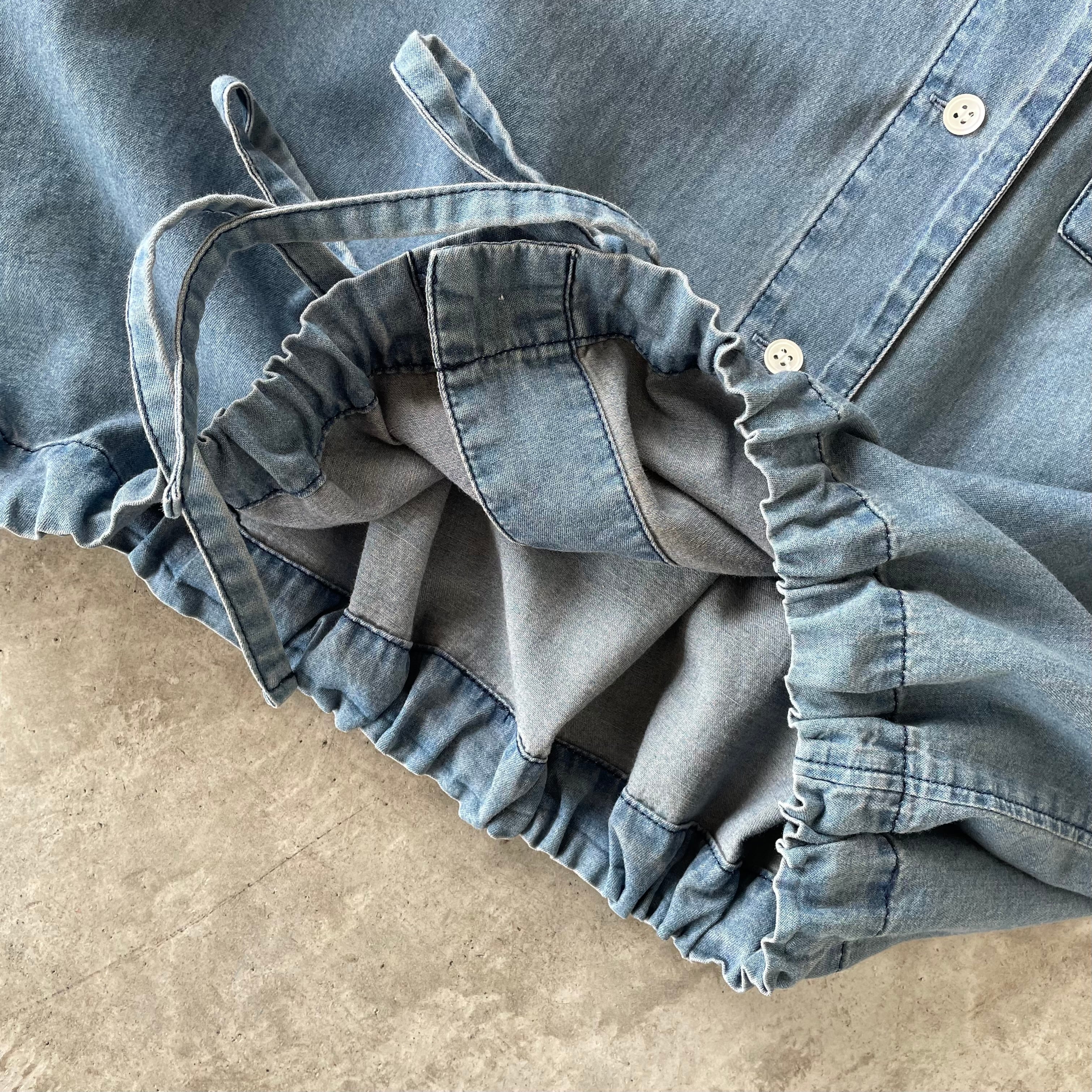 羽織りとしてはもちろん!一枚着もおすすめ♪着心地抜群なコットン素材も魅力的! コットンダンガリー 裾ドロストシャツブラウス/cafune カフネ