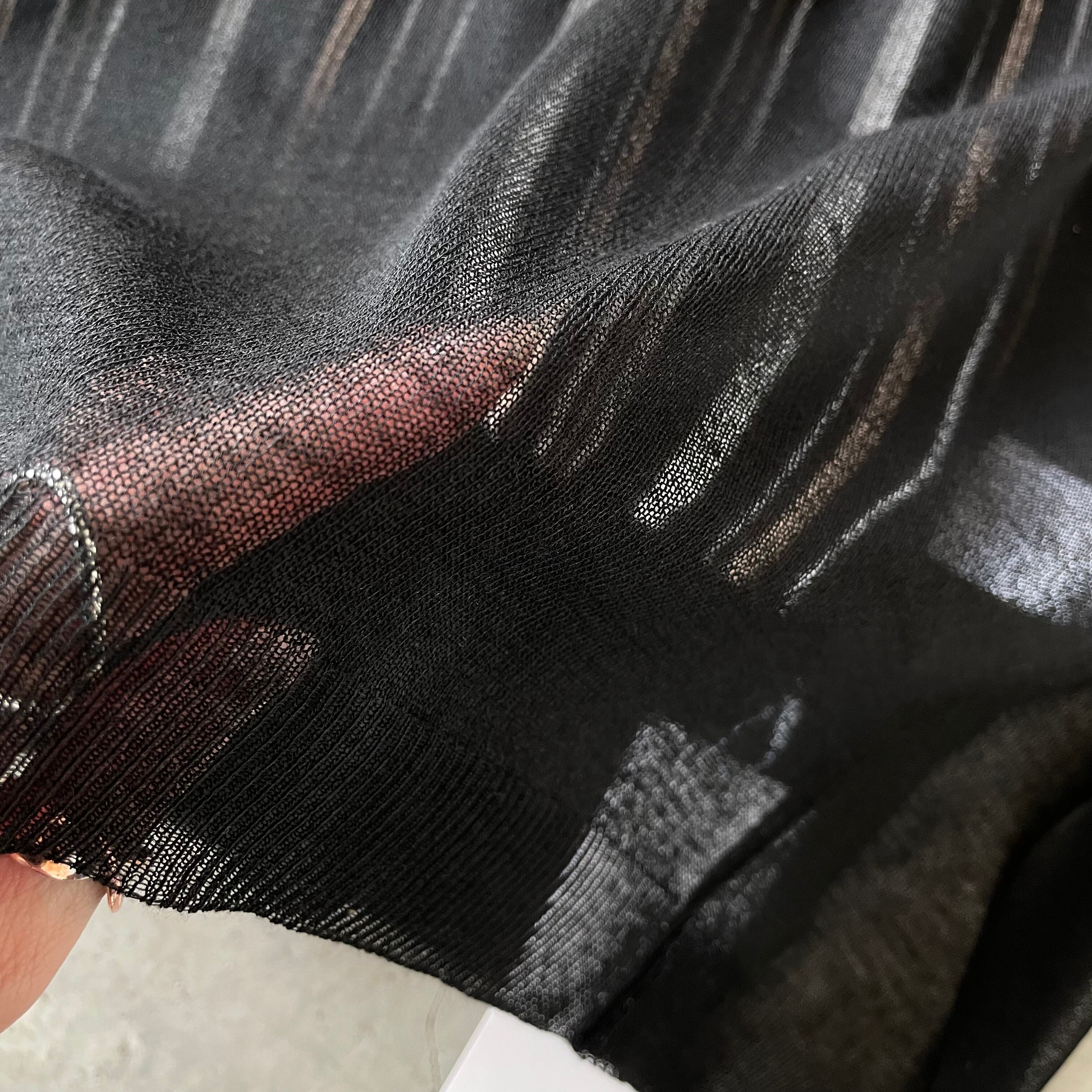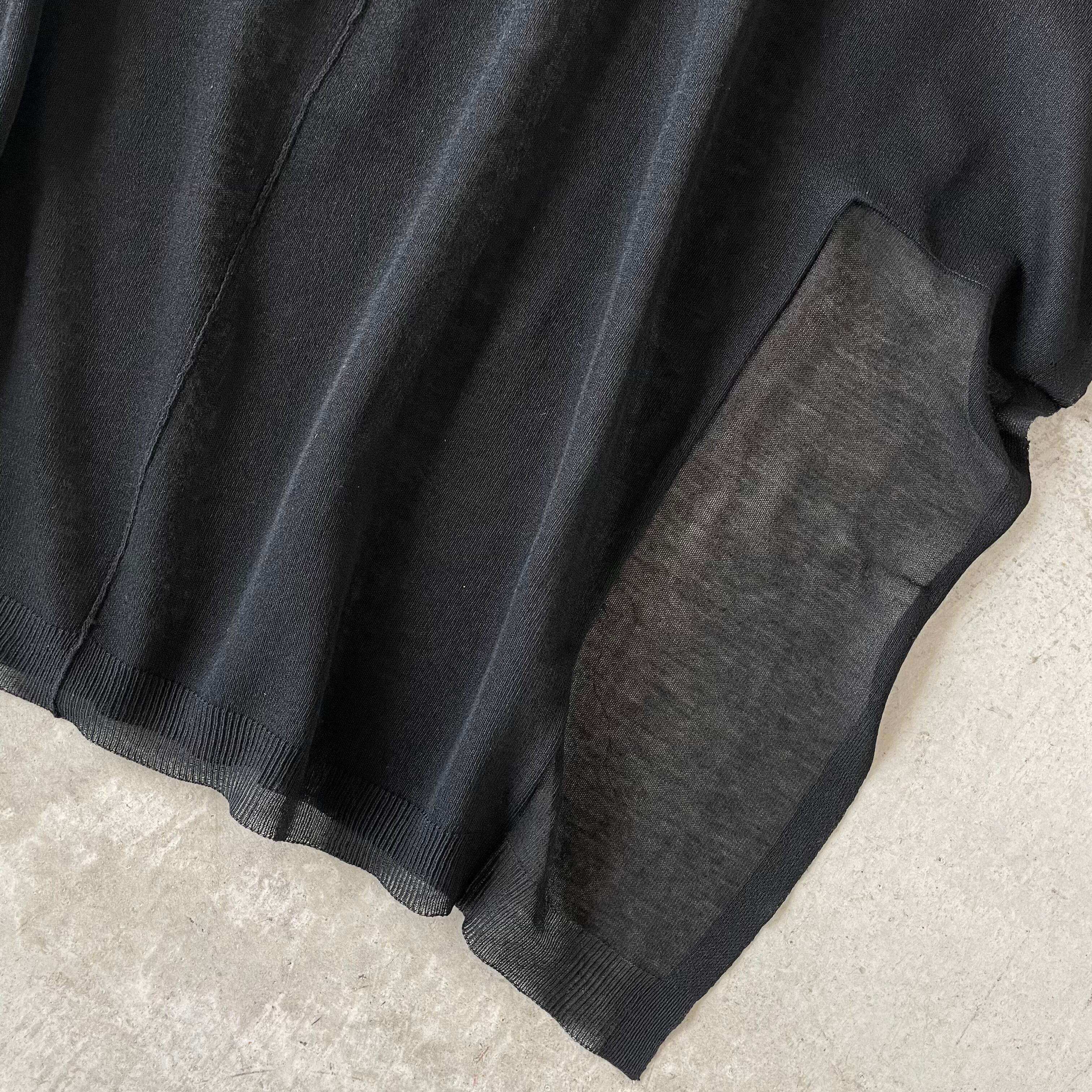 光沢感のある見た目にも涼しいシアーな編地は透け感も程良く、薄手で柔らかな着心地なんです。