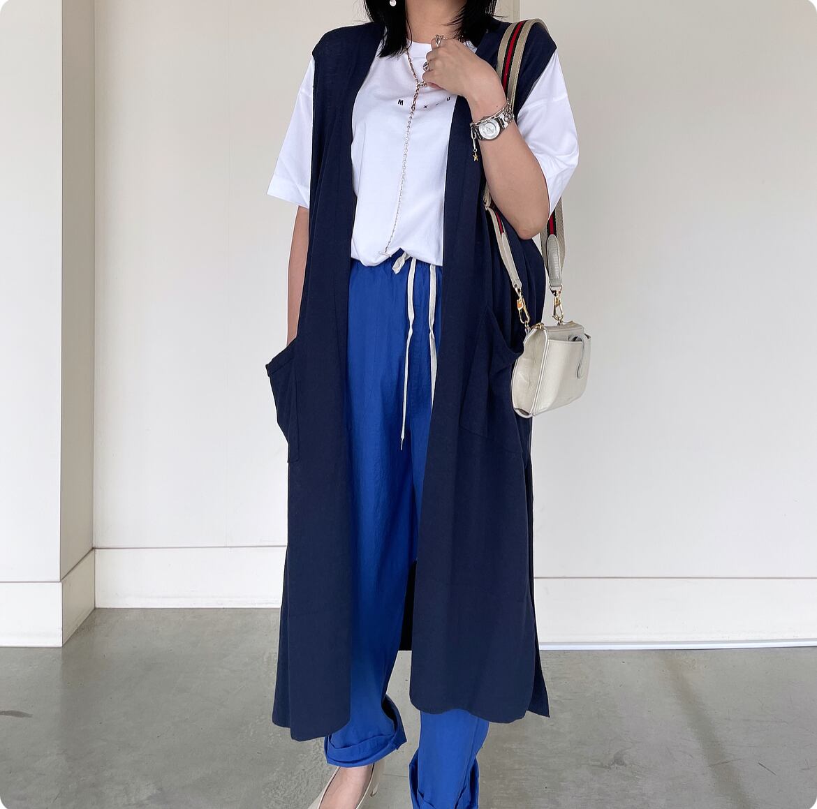 夏のレイヤードコーデの必需品♪ リネンコットン サイドスリットロングジレです。