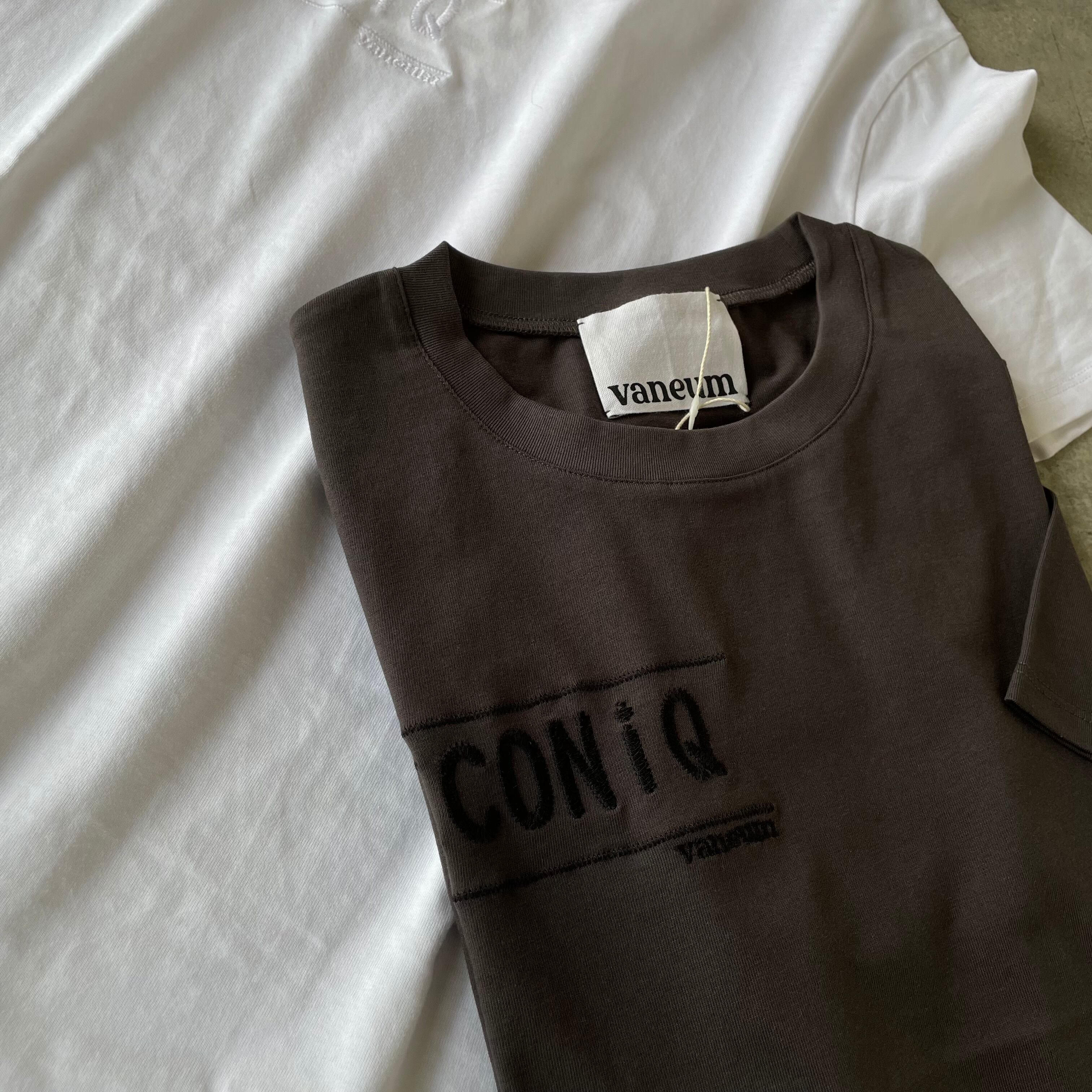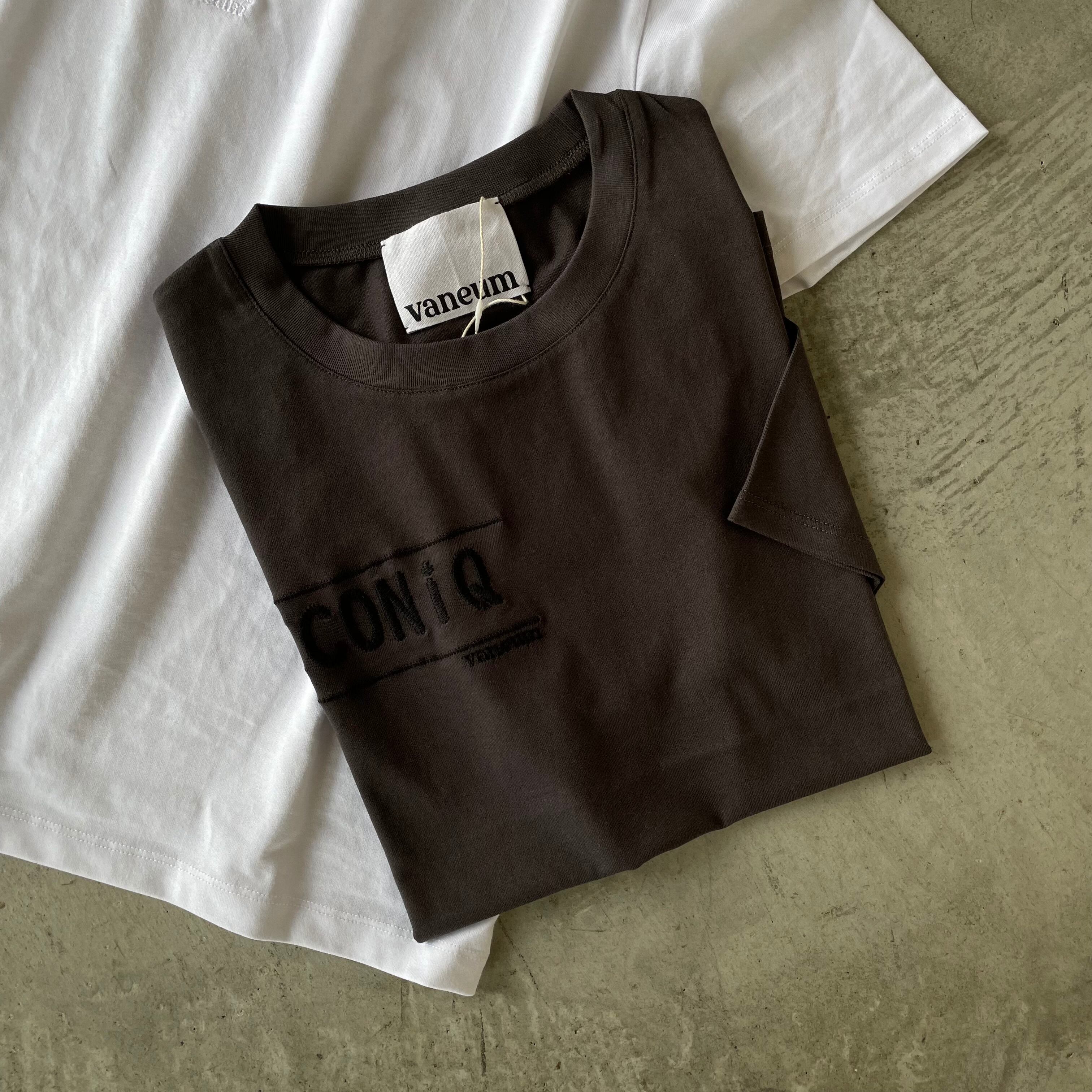 同色糸刺繍でさりげなくオシャレ感を演出♪ フロント刺繍ロゴ コットンクルーネックTシャツ/vaneumバニューム