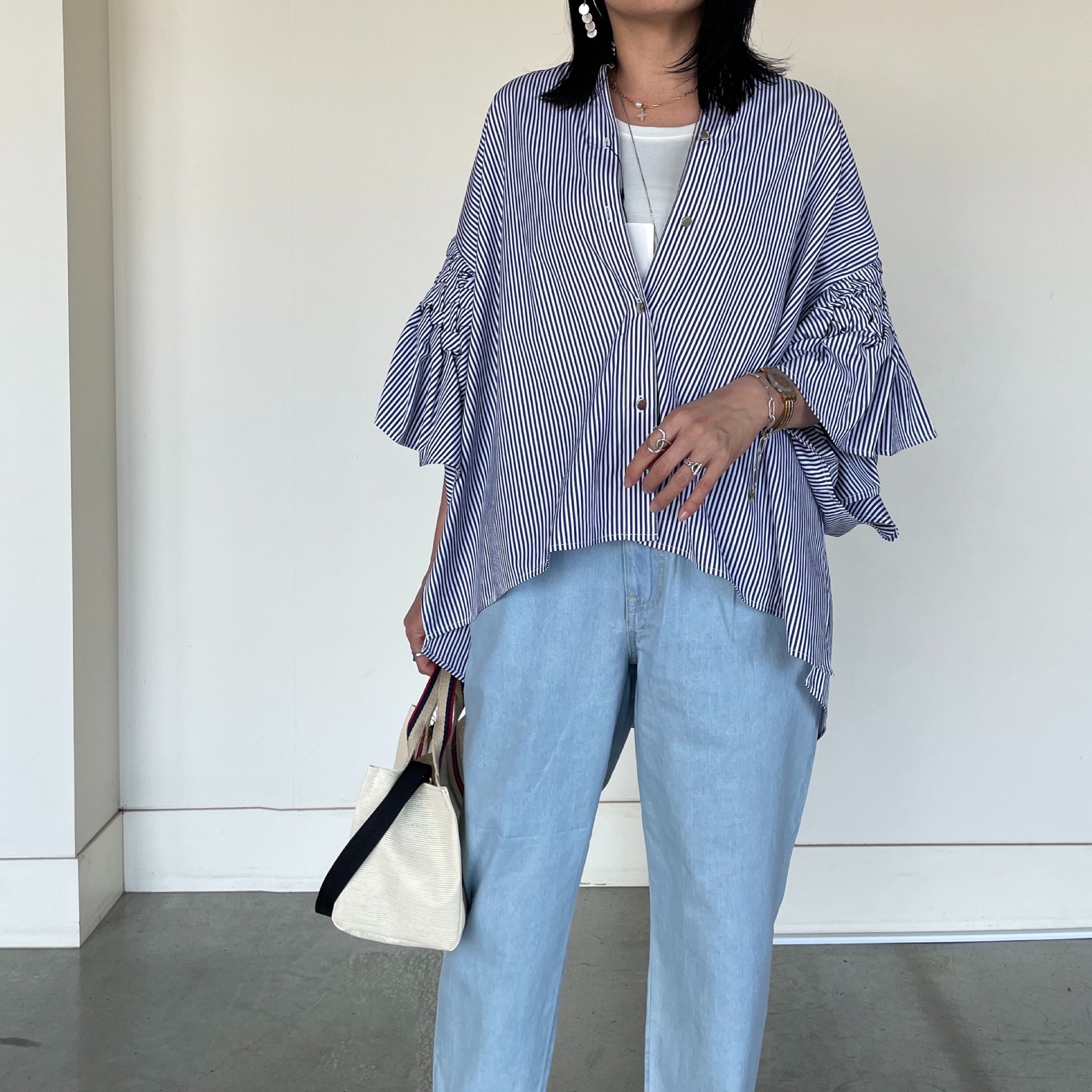 バスケットスリーブストライプシャツ/Lallia Mu ラリアムー
