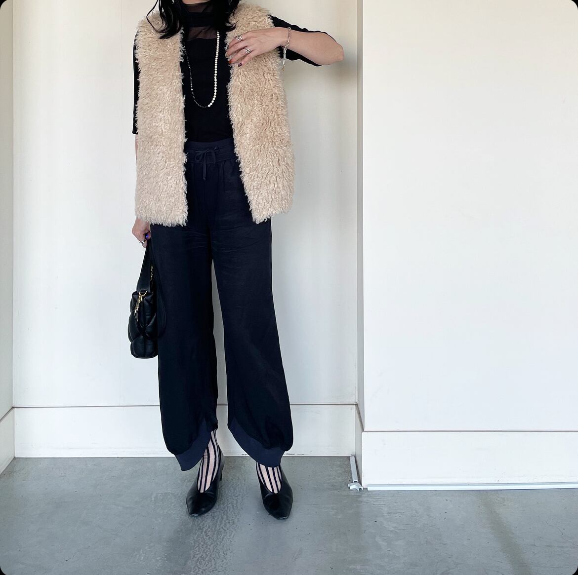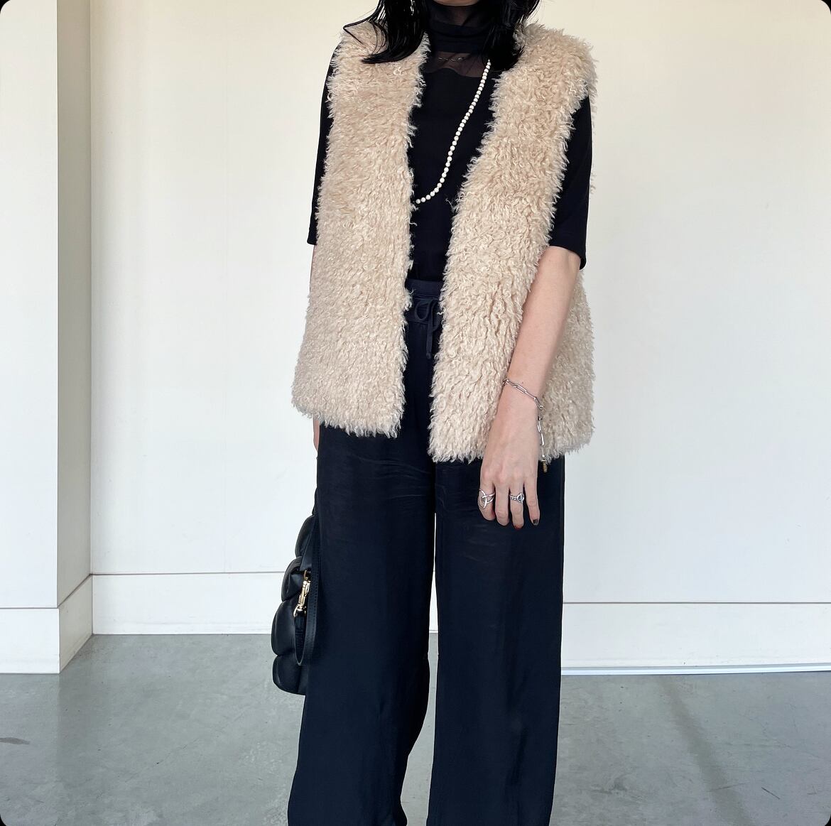 ふわもこな風合いがオトナかわいい⭐︎Vネック エコファーミドル丈ベスト.ジレです。