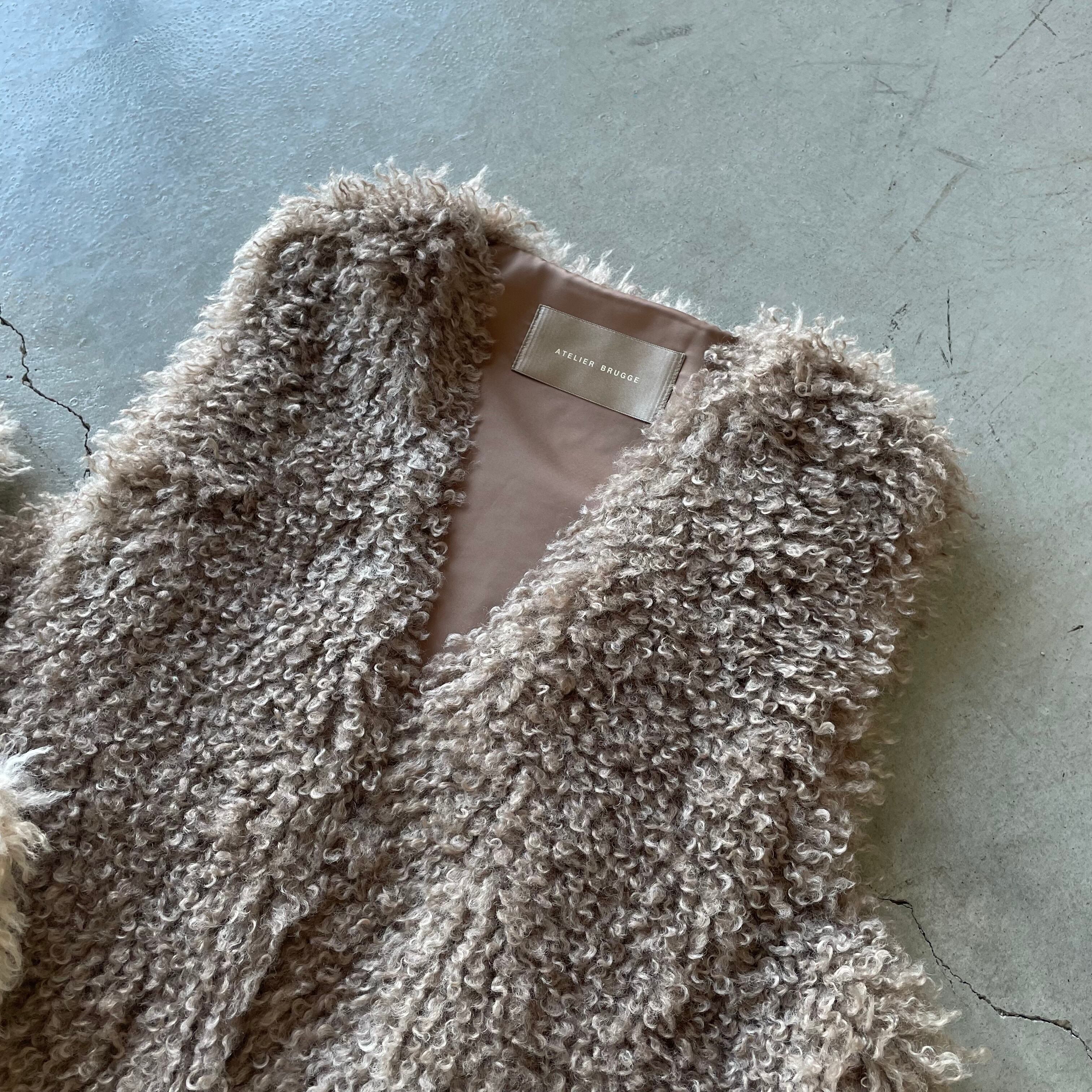 ふわもこな風合いがオトナかわいい⭐︎Vネック エコファーミドル丈ベスト.ジレ ATELIER BRUGGE/アトリエブルージュ