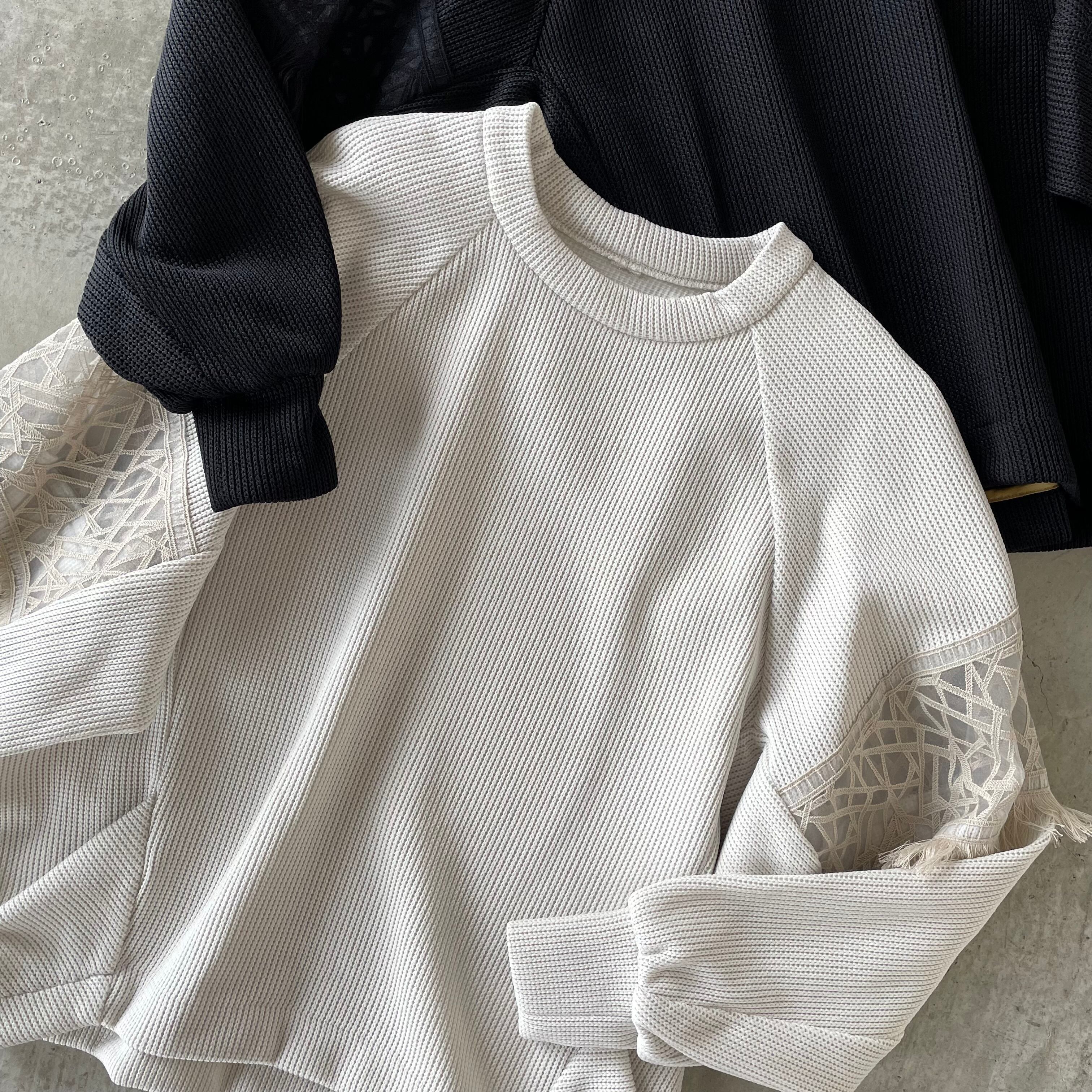 1枚で華やかコーデに!初秋に頼れるデザイントップス♪ レース&フリンジスリーブ プルオーバートップス/Lallia Mu ラリアムー