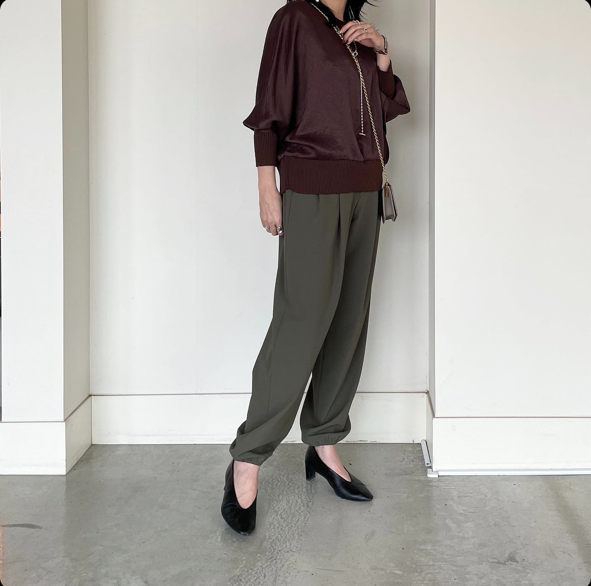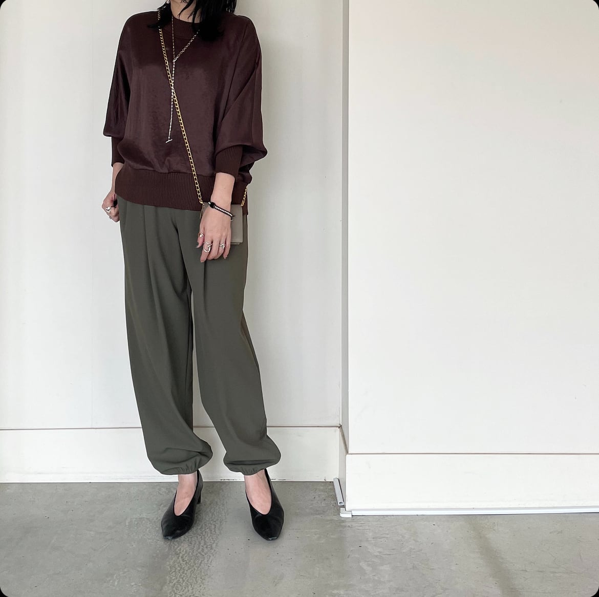 コーデの主役になるサテンコンビトップスは、ロングシーズン活躍できるオススメアイテムです。