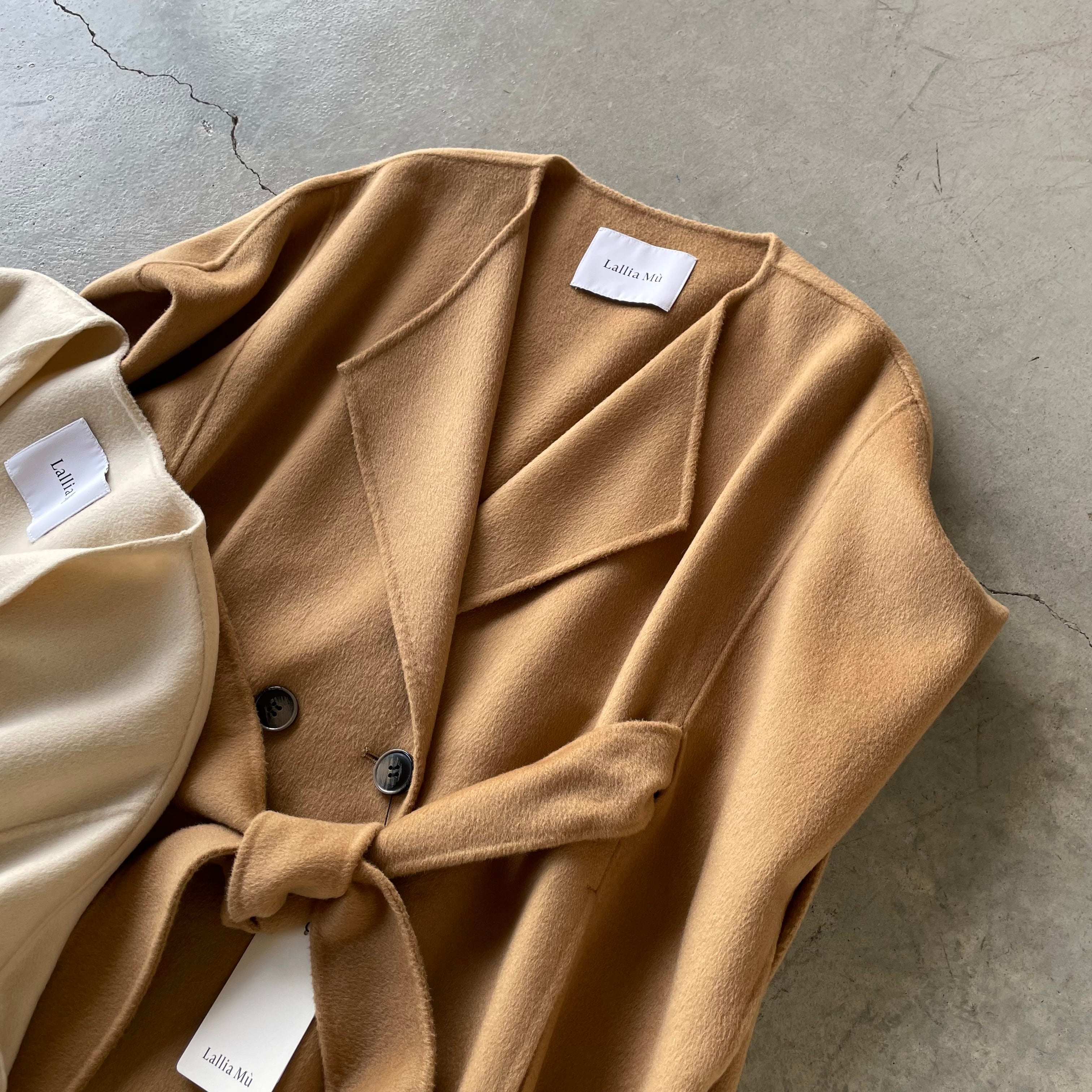 ウール100%でこんなに軽い◎ハーフスリーブでお気軽アウター♪ハーフスリーブリバーコート/Lallia Mu ラリアムー