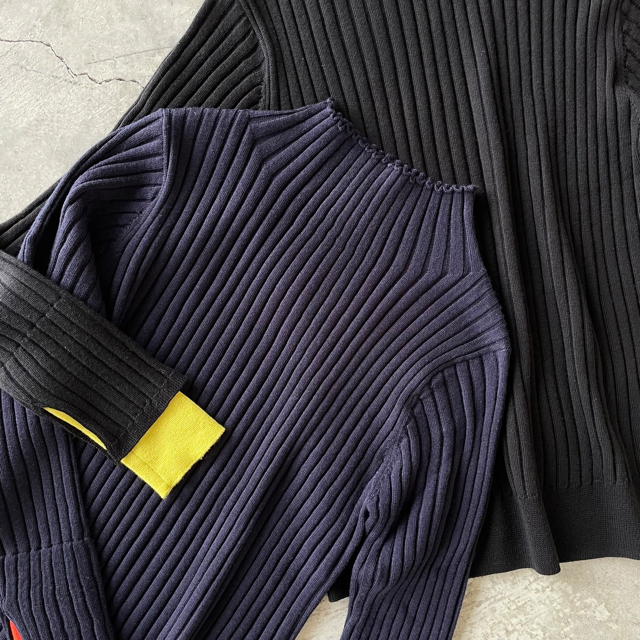 お袖の配色がコーデのワンポイントに♪ バイカラー ハイネックリブニットです。