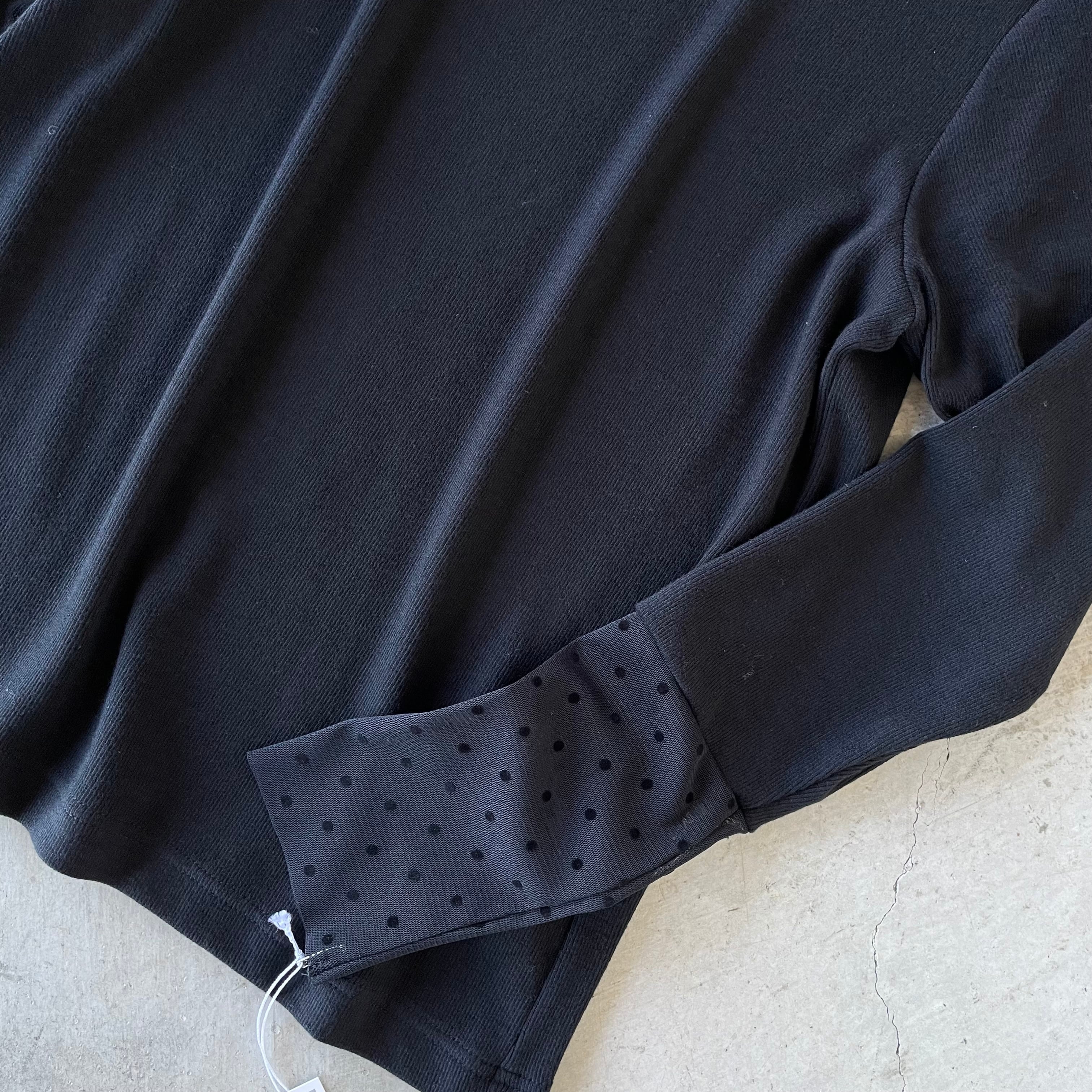 柔らかでストレッチの効いたチュール素材に、立体的なフロッキードットを散りばめたシアーがポイントのハイネックトップス。