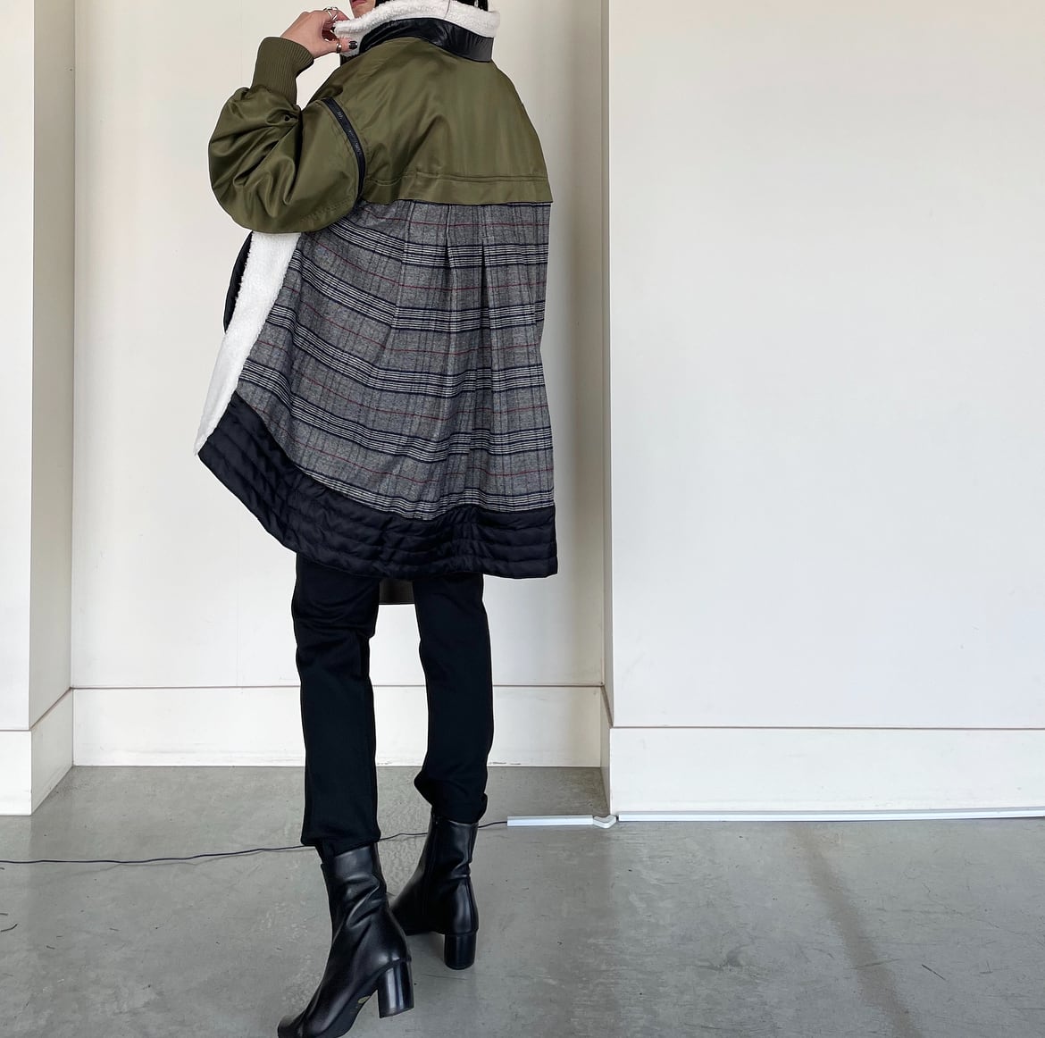 バックチェック柄がアクセント⭐︎お袖が取り外せちゃう2way仕様も嬉しいポイントに♪バックチェックボアキルト2wayジャケットです。