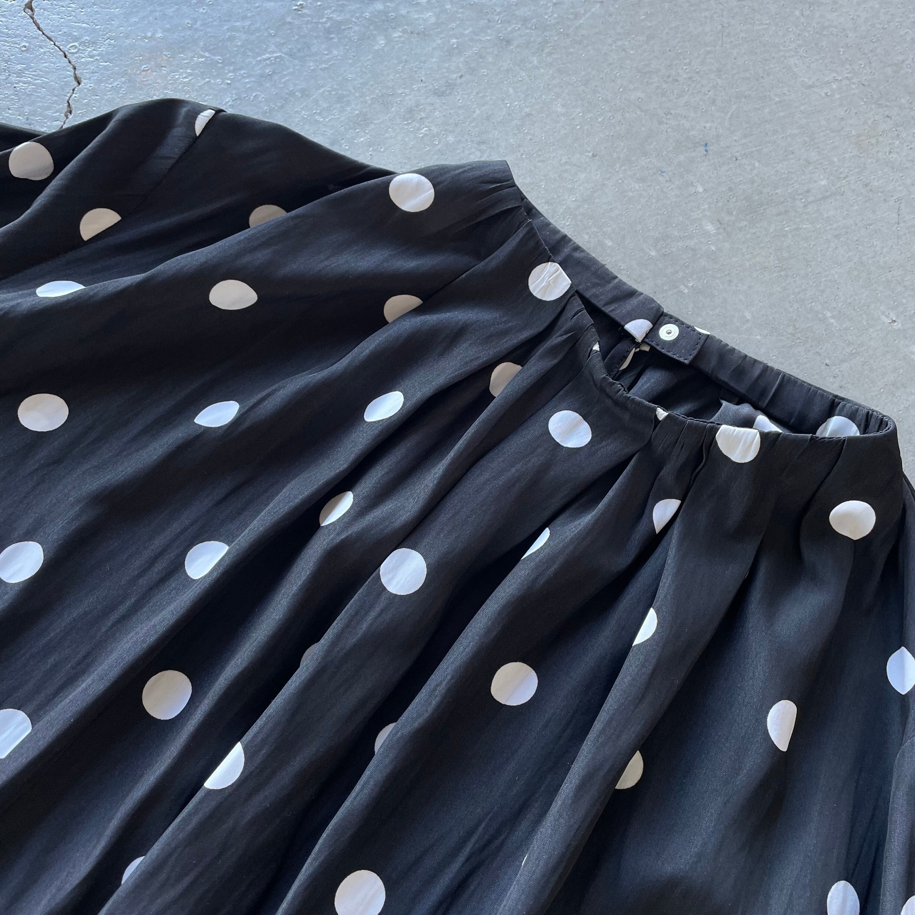 落ち感があり、しっとりと滑らかな風合いとドットプリントが魅力なギャザーブラウス。