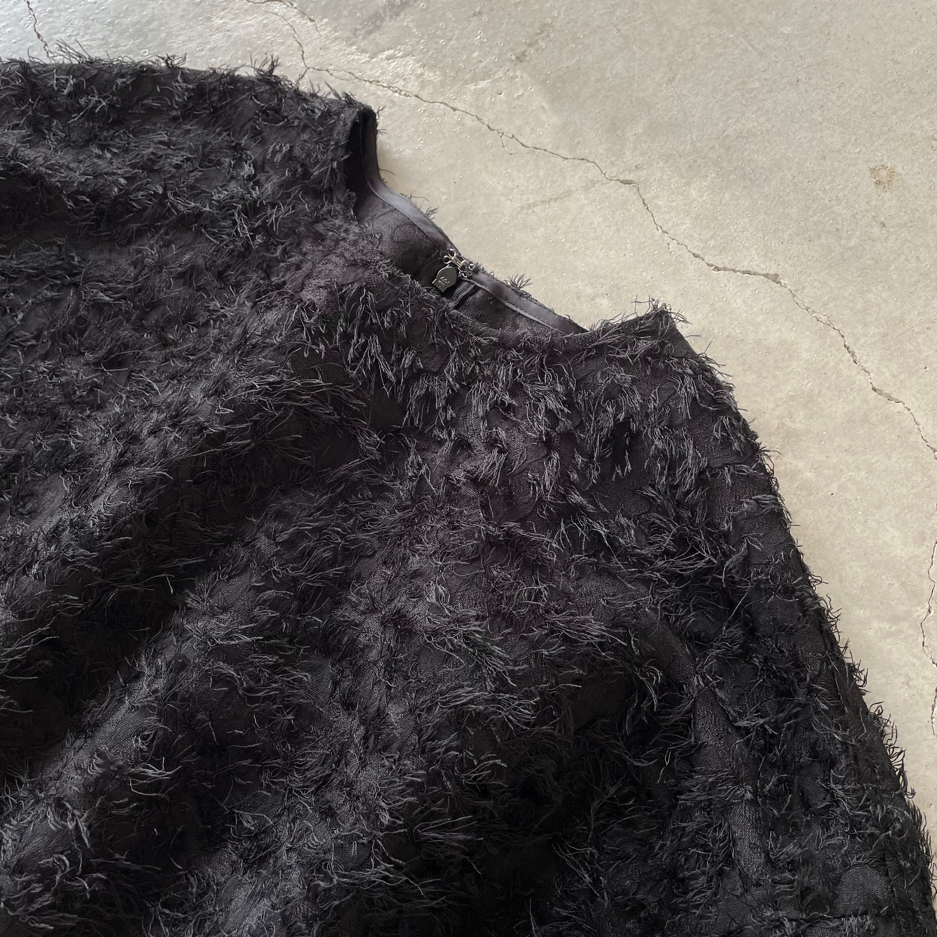 ふわふわとしたフリンジ感が高級感漂うジャガードブラウス。