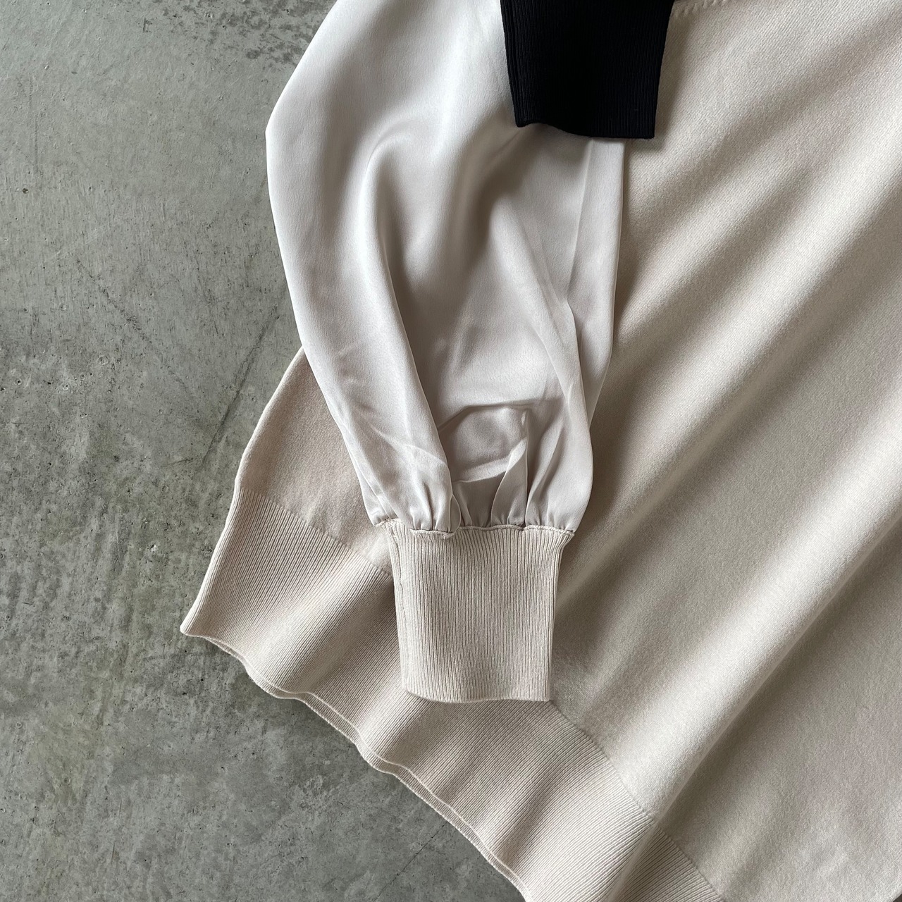 キレイ目感のあるサテン素材とニットの異素材コンビトップス♪