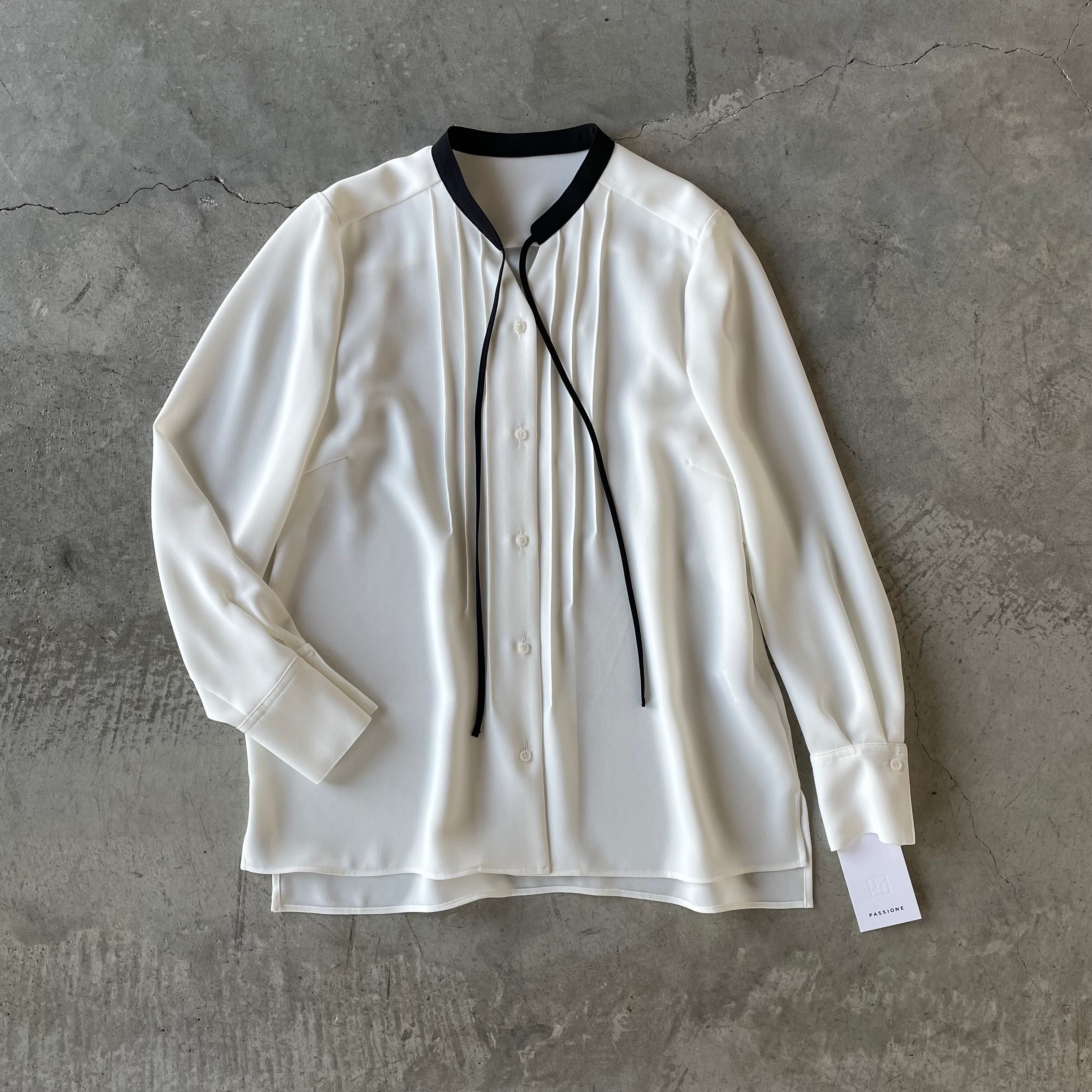 コーデの主役にぴったりのフロントのピンタックが華やかなボウタイブラウス。