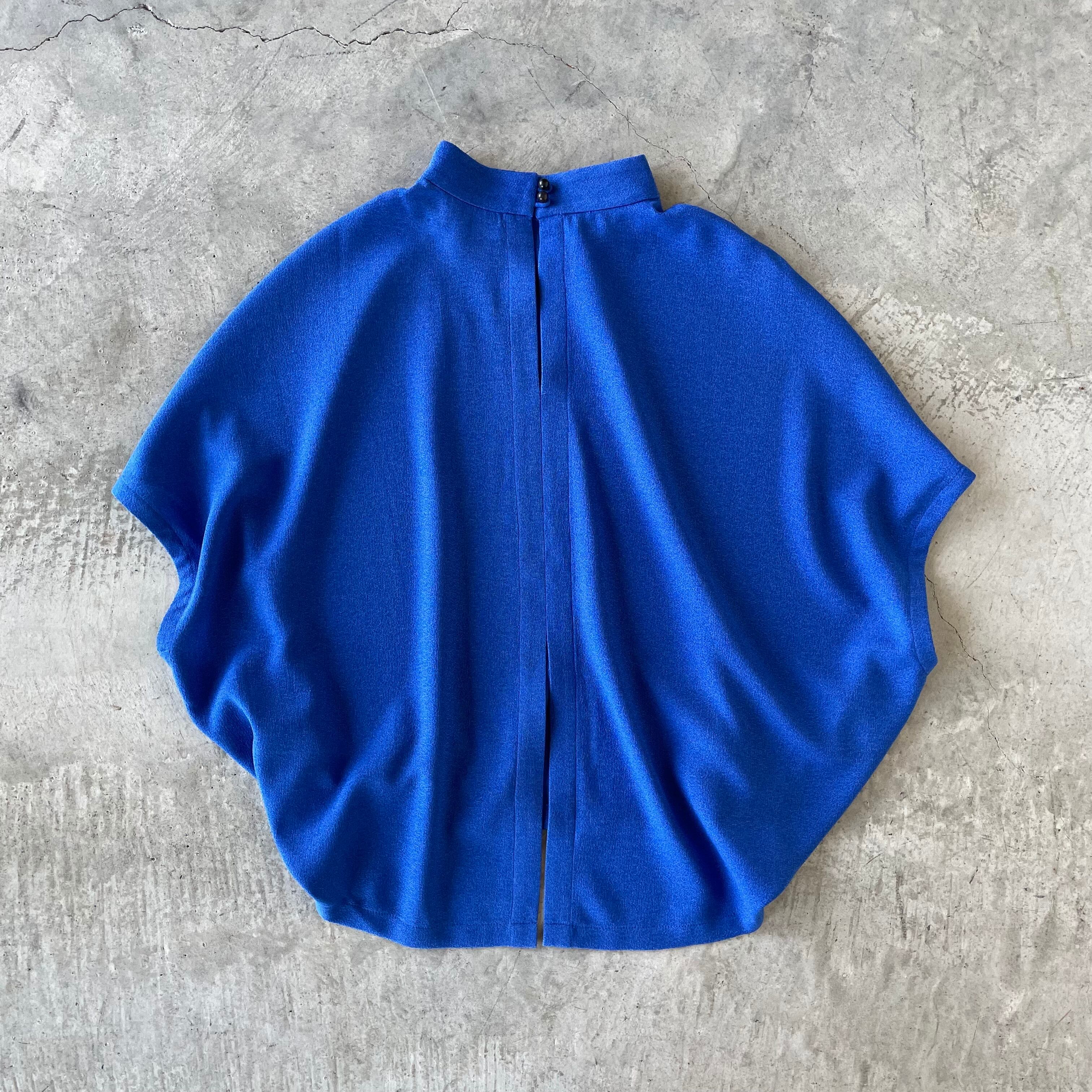 鮮やかなブルーカラー、軽やかな素材感に、動きのあるシルエットが魅力のポンチョ風トップス。